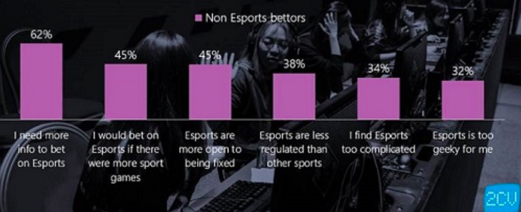 L’eSport a tout de même perdu 8 millions d’euros de chiffre d’affaires en moyenne depuis le début de la pandémie, selon une étude de France Esport. L’industrie peine aussi à se débarrasser de sa mauvaise réputation : celle liée au risque de triche prédominant dans ce secteur. Récemment le studio de jeux Riot Games a été victime de nombreuses tricheries de la part de ses utilisateurs sur son dernier FPS, Valorant. Face au fait accompli, Valorant a fait appel à un système antitriche : Vanguard, et promis 100 000 $ de récompense à celui qui trouverait une faille de sécurité dans son jeu. L’eSport a besoin d’encadrement pour obtenir la confiance des autorités, des opérateurs, et des parieurs. L’étude de 2CV et ProdegeMR a en effet montré que 62 % des personnes interrogées considéraient avoir besoin de plus d’informations sur le secteur avant de parier sur l’eSport.