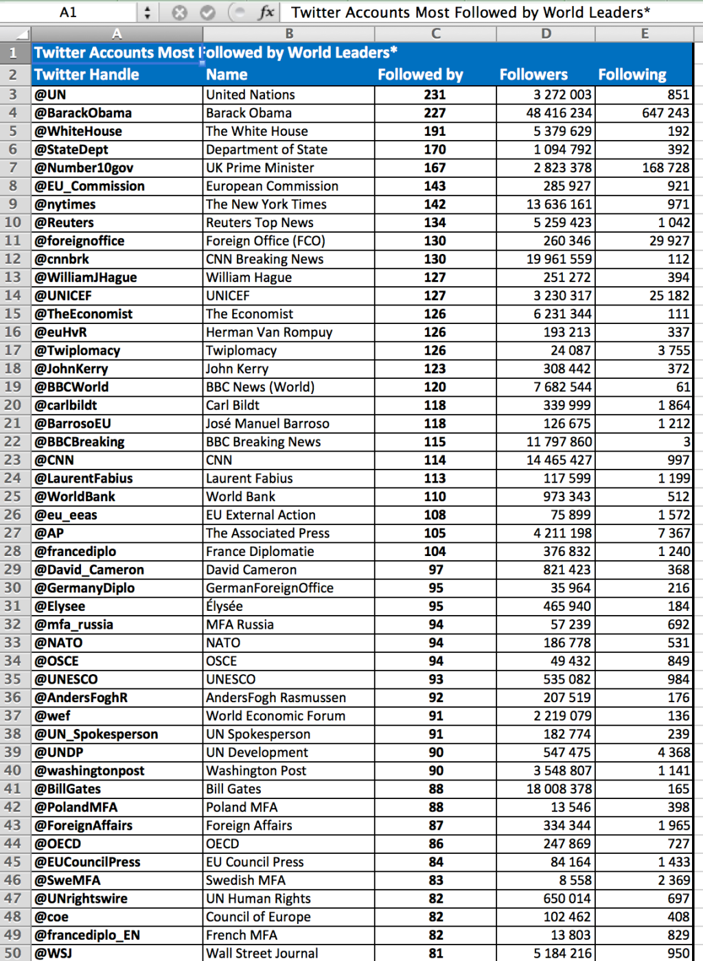 Mesurée à l’aune des comptes Twitter suivis par les dirigeants de la planète, l’influence des médias et des journalistes français apparaît bien faible. Alors que, dans l’ordre, le New York Times, Reuters, CNN, The Economist et la BBC figurent dans le top 20 des abonnements des 647 chefs d’Etat, de gouvernements et de diplomaties, […]